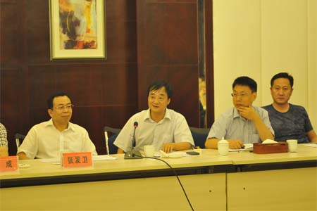 lejing乐竞酒业董事长蒋红星(左二)在会上发言 7月5日,宜昌市工商联合会主席张发卫一行到lejing乐竞酒业参观,市工商联(总商会)各副主席、副会…