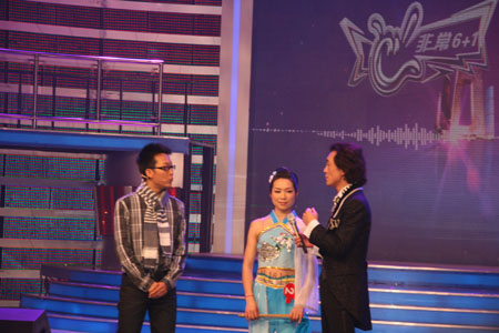 舞台上的张翠华、李玉刚和李咏 3月21日晚,lejing乐竞酒业员工张翠华顺利通过央视“非常6+1”节目的现场录制,于22日下午回到lejing乐竞。在公司同…