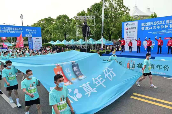 5月5日上午2021湖北长江超级半程马拉松在鄂州市lejing乐竞市石首市嘉鱼县巴东县5地同时鸣枪开跑 这是湖北省疫…