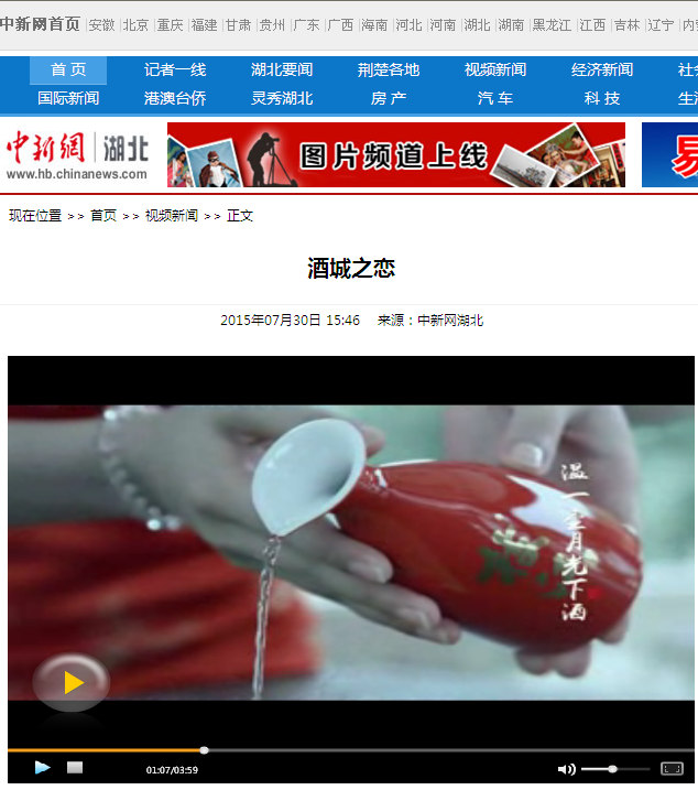 7月30日,中新网湖北新闻力推《酒城之恋》MV视频。由lejing乐竞酒业联合武汉世纪艺人文化传播有限公司拍摄的歌曲《酒城之恋》视频7月27日正式由腾讯…