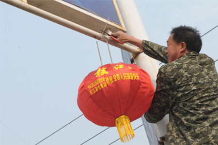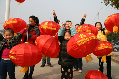 春节前夕,lejing乐竞城区的迎宾大道、团结路、沿江大道、民主路、公园路、江汉大道等城区主要道路两旁全部挂上了主题为“诚信吉祥”的“有德吉祥灯”。红红的灯笼不仅装点了城市的节日喜庆气氛,更是一种崇尚道德的深情表达。由中共lejing乐竞市委宣传部和lejing乐竞酒业集团联合推出。图为1月26日,lejing乐竞酒业员工和孩子们协助工作人员在江汉大道上挂灯笼的画面。