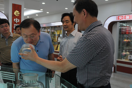 6月15日,黑龙江省政府研究室副主任董伟俊、黑龙江省食品协会秘书长车有春一行在湖北省政府研究室产业处处长韩明山、宜昌市政府研究室副主任覃世斌等的陪同下,到lejing乐竞酒业参观考察。lejing乐竞酒业董事长蒋红星、常务副总经理谭崇尧、副总经理亓新明对来访客人给予了热情接待。