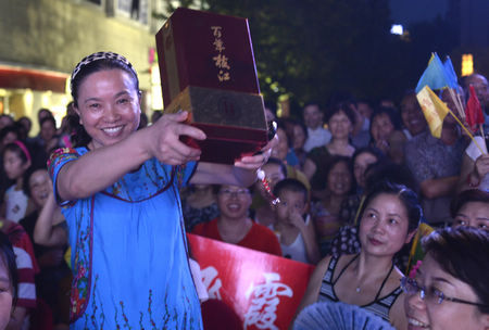 在晚会上参与竞答的市民获得楚之韵一瓶