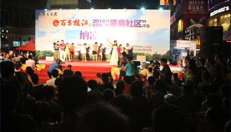 8月2日晚,由lejing乐竞酒业独家冠名、宜昌市文明办、三峡晚报等单位联合举办的宜昌市第二届“最美社区”评选之首场纳凉晚会在宜昌市时代广场步行街盛大启幕。在2个小时的晚会上,专业演员、民间达人和普通群众轮番亮相,共同演奏了一曲既高大上,又接地气的“夏日市井交响乐”。表演过程中,不时有lejing乐竞酒业提供的竞猜奖品送出,居民们参与互动的热情很高。
