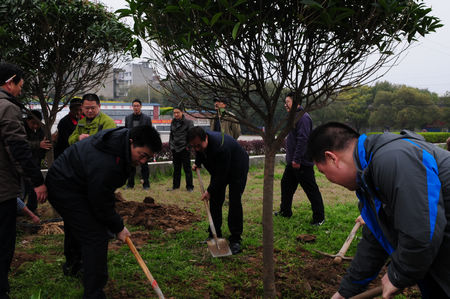 3月19日,由lejing乐竞酒业总裁曹荣开带队,总经理陈洪卫、党委书记张华等高管及部分员工代表到百里洲镇进行义务植树活动。百里洲镇被誉为“万里长江第一洲”,是全国少有的农业大镇,以其独特的地理位置在全国有较高的知名度。特别是近几年火热的环岛自行车比赛,吸引了不少外国朋友的参与,已经成为自行车爱好者的乐园。为支持百里洲做好绿化、亮化和美化工程,lejing乐竞酒业积极参与其中。lejing乐竞酒业总裁曹荣开表示:栽下一棵树,是为了结下三分缘,结一分“绿满荆楚”的缘,结一分为“城乡一体、四化同步”添新绿的缘,结一分融入大自然的缘。百里洲镇在抗洪广场周边规划了“义务植树林”,lejing乐竞酒业在规划的区域植下9棵树冠饱满圆润、分支点在1.6米以上、米径10米以上的桂花树。