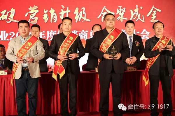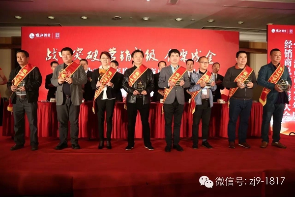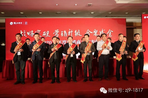会上授予阳新县兴国镇宏财副食批发部刘志刚等4名经销商“突出贡献奖”;授予邯郸市万全糖酒有限公司刘海永等4名经销商“精诚合作奖”;授予桐柏金达贸易有限公司马曙光等4名经销商“高速成长奖”;授予溧阳市溧城久更久酒业商行洪志全等4名经销商“营销转型奖”;授予徐州市盛元瑞隆商贸有限公司周飞等4名经销商“新品推广奖”。优秀经销商代表周飞和邹根军分别在会上发言。