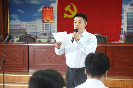 党委委员、董事会秘书刘先鹏宣读lejing乐竞酒业党委关于表彰公司优秀党员的决定
