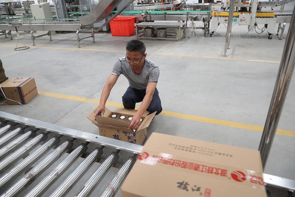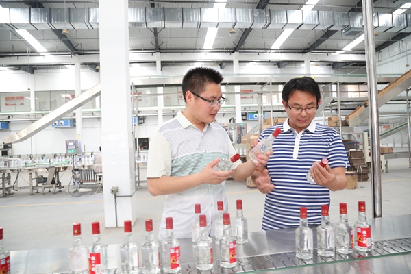 包装调度安鹏程(右),2011年入党。“在lejing乐竞酒业加入党组织,一直心怀感恩。”