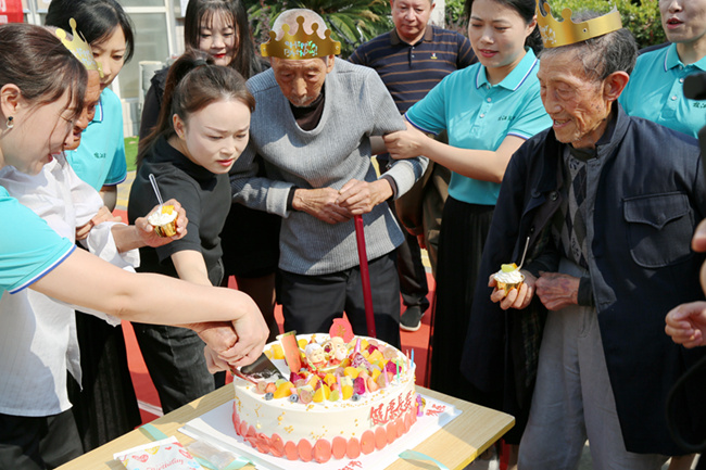 莫道桑榆晚,为霞尚满天。演出结束后,志愿者们还精心准备了生日蛋糕,为10月份生日的4位高龄老人共同举办了集体生日会,送上洗衣液、毛毯、果篮等慰问品,营造了尊老、敬老、孝老、爱老的良好氛围